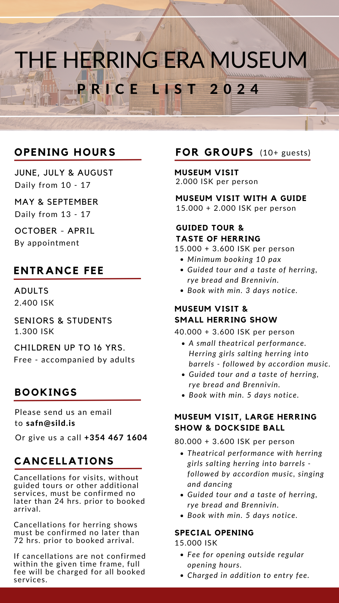 Source : m.facebook.comPrices 2024 | Prices | Síldarminjasafnið