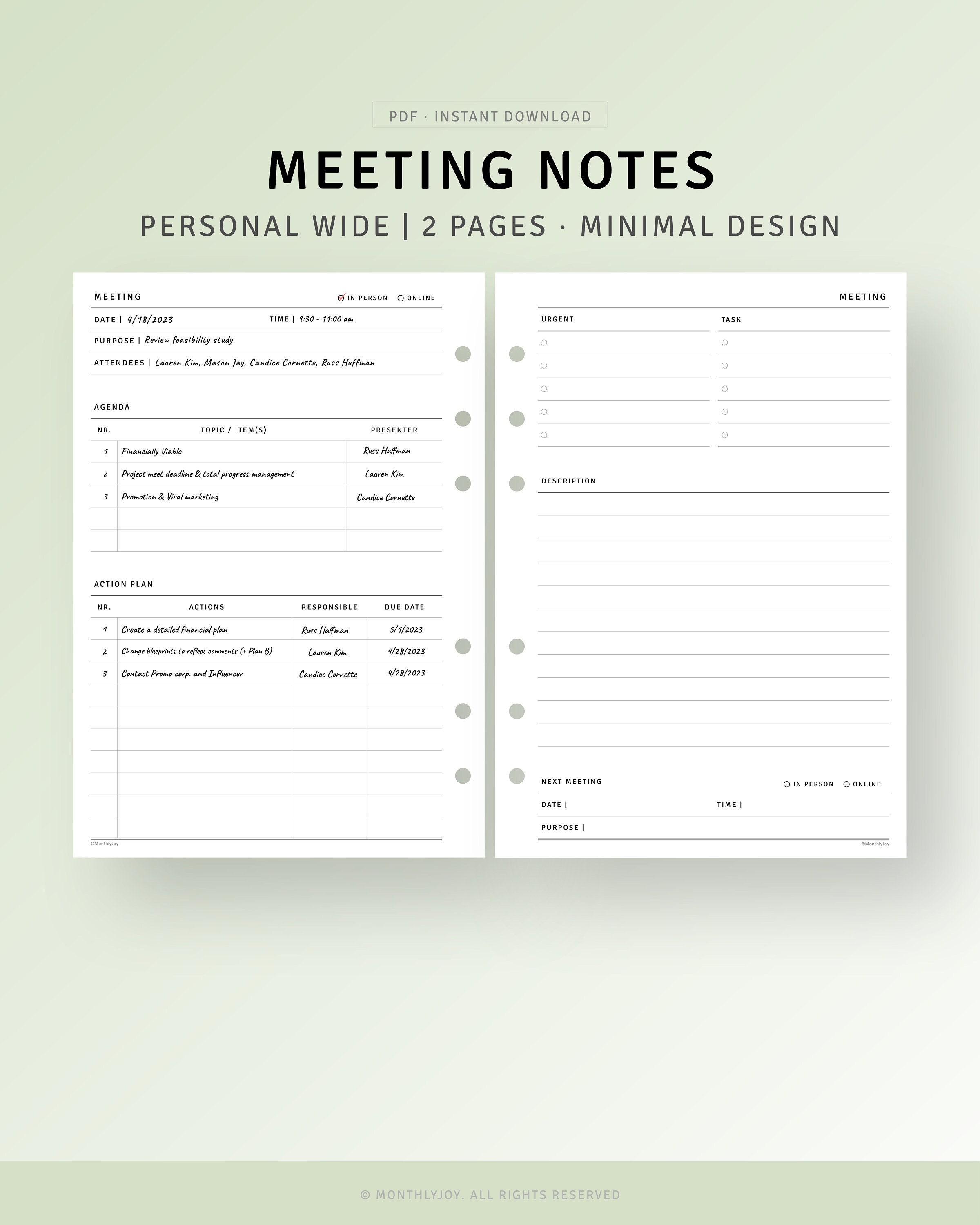 Source : www.facebook.comMeeting Minutes Printable Personal Wide Inserts, Business Planner